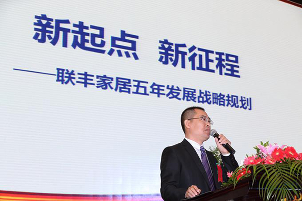 誠然,品牌的進步,行業(yè)的發(fā)展需要的不僅僅只是對于過去輝煌的承載,更重要的是對于未來新變的開拓。聯(lián)豐發(fā)展三十年以來,所代表的早已不僅僅是自身品牌的壯大,更多的是整個地板行業(yè)的前進與高飛。然而,地板行業(yè)自三十來年的發(fā)展以來,已經(jīng)到了瓶頸難以突破、產(chǎn)業(yè)期待轉(zhuǎn)型的關(guān)鍵時期。聯(lián)豐作為行業(yè)的領(lǐng)軍者,有責(zé)任也有義務(wù)率先打破這一發(fā)展局限。對此,在大會中聯(lián)豐副總經(jīng)理李玉明先生做了《新起點、新征程——聯(lián)豐家居五年發(fā)展戰(zhàn)略規(guī)劃》的主題演講。