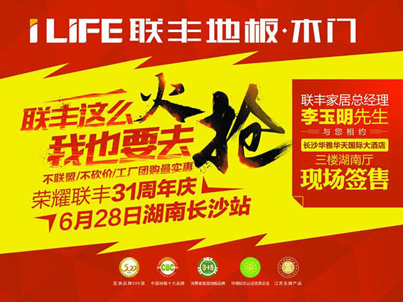 628日,主題為“聯(lián)豐這么火,我也要去搶”的湖南全省聯(lián)動工廠直供大會在長沙華雅華天國際酒店隆重舉行!為響應(yīng)聯(lián)豐地板31周年慶,此次長沙站除了品類齊全的產(chǎn)品以外,最優(yōu)惠的價格和最豐盛的禮品也成為這次活動中的一大亮點。人流涌動的活動現(xiàn)場不僅僅是聯(lián)豐品牌實力的展現(xiàn),更是其彰顯核心競爭力最完美的呈現(xiàn)。