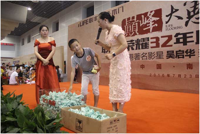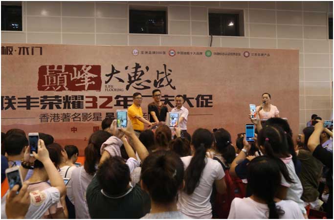 從香港特意趕來的著名影星吳啟華先生一下飛機(jī)就趕赴現(xiàn)場(chǎng),與觀眾互動(dòng),與粉絲合影,平易近人的性格與聯(lián)豐腳踏實(shí)地做地板的風(fēng)格極為相似,一首《倚天屠龍記》的主題曲更是引得現(xiàn)場(chǎng)尖叫連連。