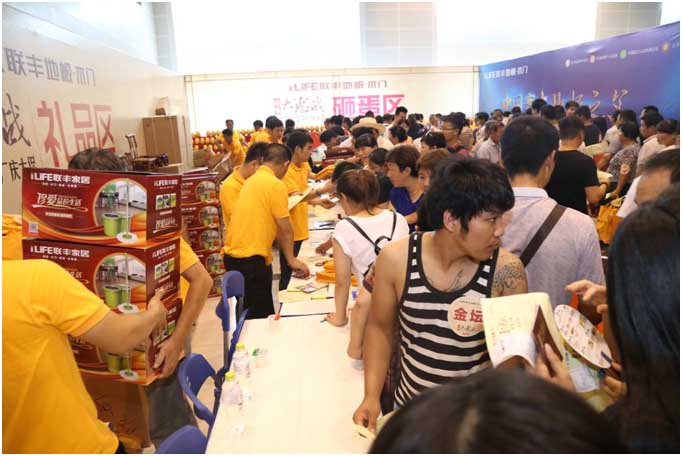 金蛋區(qū)砸出的小米電視和美的三門冰箱,以及現(xiàn)場(chǎng)抽出的金條大獎(jiǎng)和免單大獎(jiǎng)都將整個(gè)會(huì)場(chǎng)的氛圍推向一波又一波高潮,數(shù)千張訂單很快裝滿了三大箱,最終直接堆成一座小山。擁擠的人群,一個(gè)個(gè)震撼的畫面,90%多的簽單率,都讓人難以置信,這僅僅只是一場(chǎng)單品牌的廠慶活動(dòng),放眼整個(gè)行業(yè)足以傲視群雄,聯(lián)豐的品牌號(hào)召力可見一斑。