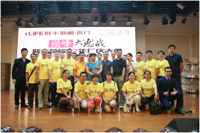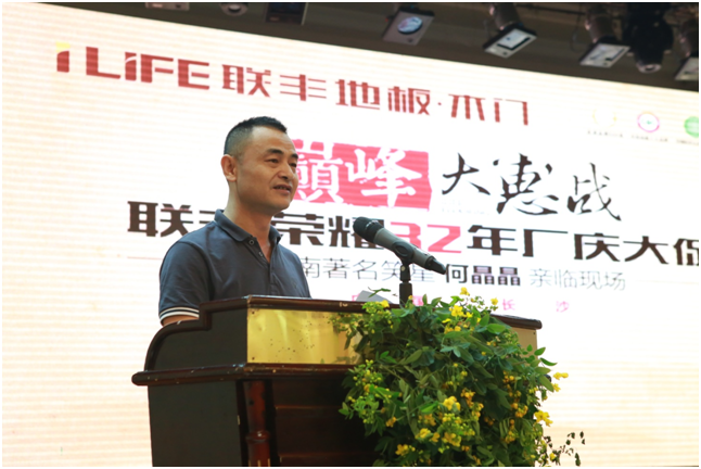 在一陣激情飛揚、鼓掌整天的水鼓舞后,大惠戰(zhàn)正式拉開帷幕。聯(lián)豐木業(yè)董事長沈建新先生首先致歡迎致辭,鄭重承諾:一、本次活動力度之大前所未有,全場均為工廠直供價,全年保價。二、聯(lián)豐作為中國實木地板之父,亞洲品牌500強,中國地板十大品牌,中國環(huán)保地板品牌等行業(yè)頂尖榮譽的獲得者,本次活動銷售的所有產(chǎn)品均符合及優(yōu)于國家標準。三、本次“巔峰大惠戰(zhàn)—聯(lián)豐榮耀32年廠慶”大促僅限今天到現(xiàn)場的客戶予以享受工廠直供優(yōu)惠及超值服務。選擇聯(lián)豐就是選擇實惠,選擇聯(lián)豐就是選擇健康!希望位業(yè)主朋友滿意而來,滿載而歸,感謝大家32年來對聯(lián)豐的支持與信任,預祝“巔峰大惠戰(zhàn)—聯(lián)豐榮耀32年廠慶”大促圓滿舉行!董事長的承諾就是最大的強心劑,現(xiàn)場進入白熱化搶購階段。