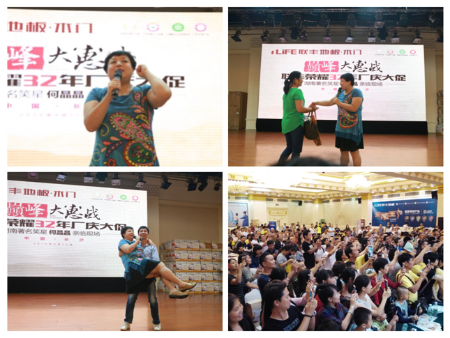 自古湖湘多美女,未見其人先聞其聲,隨著三湘第一美女—何晶晶爆笑登場,巔峰大惠戰(zhàn)迎來又一波高潮!懂什么是且胖且珍惜嗎?胖不是關(guān)鍵,地板撐不住也沒關(guān)系,關(guān)鍵是要有聯(lián)豐地板!在全場業(yè)主的歡呼中,何晶晶幽默的與觀眾互動!