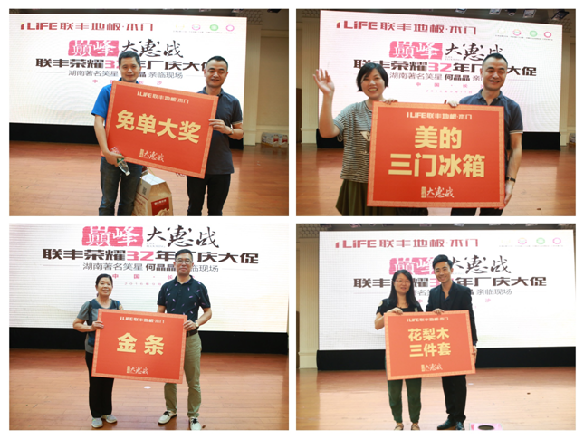 接著整點抽獎環(huán)節(jié),驚喜送出近500份大禮——旺宅紅木大象、仿古實木椅、花梨木三件套、金條、美的三門冰箱、4999元免單大獎都與現(xiàn)場的業(yè)主如約而至??偨?jīng)理李玉明在接受中華地板網(wǎng)記者采訪時表示,聯(lián)豐不僅要讓消費者用最低的價格買到最好的聯(lián)豐產(chǎn)品,還要讓在場所有支持聯(lián)豐的朋友把終極的實惠帶回家。