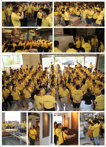 培訓(xùn)間隙,學(xué)員們走進聯(lián)豐實木/實木復(fù)合地板、強化地板、木門三大生產(chǎn)基地。在整潔明亮的車間前,在井然有序、亞太地區(qū)最先進的實木地板油漆線前,李總為大家詳細講解行業(yè)獨有的3-工序,分享了聯(lián)豐精品“零缺陷”出爐的全過程,學(xué)員們無不為聯(lián)豐如此過硬的質(zhì)量、優(yōu)秀的品質(zhì)所震撼,無不為擁有一個強大而又榮耀的品牌而自豪!
