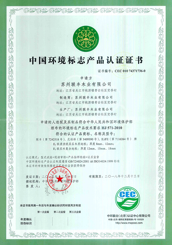 其實,去年江蘇就啟動“263專項行動”,打響碧水藍天保衛(wèi)戰(zhàn),作為重點企業(yè)的聯豐,已經通過了嚴格審核。正是因為我們牢記環(huán)保責任,重視技術投入,制造工藝升級,使得聯豐贏得了社會各界的肯定,中國環(huán)境標志優(yōu)秀企業(yè)、中國環(huán)保地板品牌、ISO14001國際環(huán)境管理體系認證,中國環(huán)境標志產品認證等榮譽就是最好的褒獎。特別是十環(huán)優(yōu)秀企業(yè),作為目前國內最高標準的綠色環(huán)保認證,國家明文規(guī)定只有通過“十環(huán)認證”的產品才能稱為“綠色產品”,全國只有四千多家企業(yè)榮譽此譽,聯豐脫穎而出更代表著國家對聯豐在綠色環(huán)保方面的最大肯定。