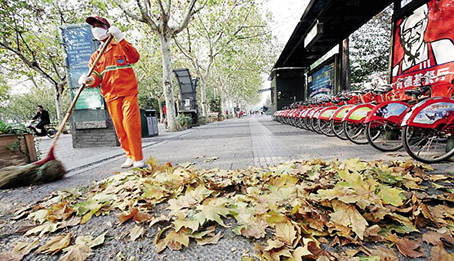 天氣漸冷,白晝漸短。冬日里,朝陽幾乎總是“姍姍來遲”,夕陽卻已早早就落下。黎明之前,日落之后,卻有這樣一群人在忙碌著,他們裹緊大衣,頂著寒風,在街頭巷尾,在公交站臺,在城市道路,在公園角落里清掃著垃圾。一雙雙皺紋滿滿、干燥凍紅的手裝點著睡夢中的城市。