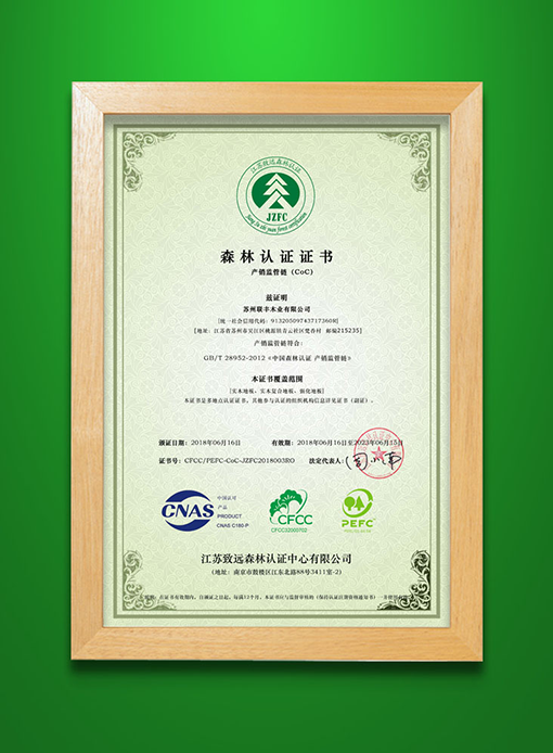 引領(lǐng)健康消費(fèi)潮流的聯(lián)豐在榮獲“中國(guó)地板環(huán)保品牌”之后,率先獲得中國(guó)森林認(rèn)證產(chǎn)銷監(jiān)管鏈(CFCC-COC)證書,成為試點(diǎn)企業(yè)中第一家通過產(chǎn)銷監(jiān)管鏈認(rèn)證的地板企業(yè)。這意味著聯(lián)豐擁有了突破林產(chǎn)品貿(mào)易壁壘、拓展產(chǎn)品市場(chǎng)準(zhǔn)入空間的“綠色通行證”,也是對(duì)聯(lián)豐踐行綠色發(fā)展理念,促進(jìn)森林資源有效保護(hù),維護(hù)生態(tài)環(huán)境良性循環(huán)、履行社會(huì)責(zé)任的最好褒獎(jiǎng)。