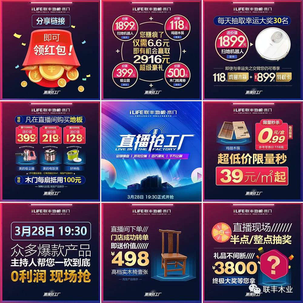 始創(chuàng)于1985年的聯(lián)豐,多年的發(fā)展歷程中,榮獲無數(shù)榮譽(yù):中國地板十大品牌、江蘇名牌、環(huán)境標(biāo)志認(rèn)證優(yōu)秀企業(yè)、中國環(huán)保地板品牌、中國林業(yè)產(chǎn)業(yè)創(chuàng)新獎、中國森林認(rèn)證企業(yè)、中國木業(yè)百強(qiáng)企業(yè)、國家標(biāo)準(zhǔn)化示范企業(yè)等等,并以數(shù)十項創(chuàng)新成就被行業(yè)贊譽(yù)為:中國實(shí)木地板之父”。十年來,每一次的廠慶大促都已成為世人矚目的焦點(diǎn),把盛典典禮轉(zhuǎn)化為最大的優(yōu)惠力度讓利于消費(fèi)者,讓更多的人來享受更實(shí)惠的價格、更優(yōu)質(zhì)的產(chǎn)品、更周到的服務(wù),3月28日“直播搶工廠”就是不忘消費(fèi)者初心的沿襲。分享鏈接,即享傭金:分享鏈接即可領(lǐng)最高200元紅包。幸運(yùn)抽獎,尊享特權(quán):僅需6.6元!即有機(jī)會贏取1899元智能掃地機(jī)器人+118元雞翅木筷+899特權(quán)卡,總計2916元的超級豪禮!真賺瘋了!限量秒殺,淘寶瘋搶:價值118元的雞翅木筷秒殺價僅0.99元/盒。地板秒殺價最低僅39元/m2。直播工廠,價格抄底:活動當(dāng)天眾多地板、木門爆款產(chǎn)品,主持人幫您一戰(zhàn)到底,0利潤,現(xiàn)場搶。門店轉(zhuǎn)單,豪禮相送:直播間下單,門店成功轉(zhuǎn)單,非淘寶產(chǎn)品即送價值498元高檔實(shí)木椅壹張。定時抽獎,好運(yùn)連連:直播現(xiàn)場半點(diǎn)/整點(diǎn)抽獎,禮品不間斷,價值3800元的終極大獎等您拿!在線下單,無需見面,此次直播活動力度可謂十年來所罕見。
