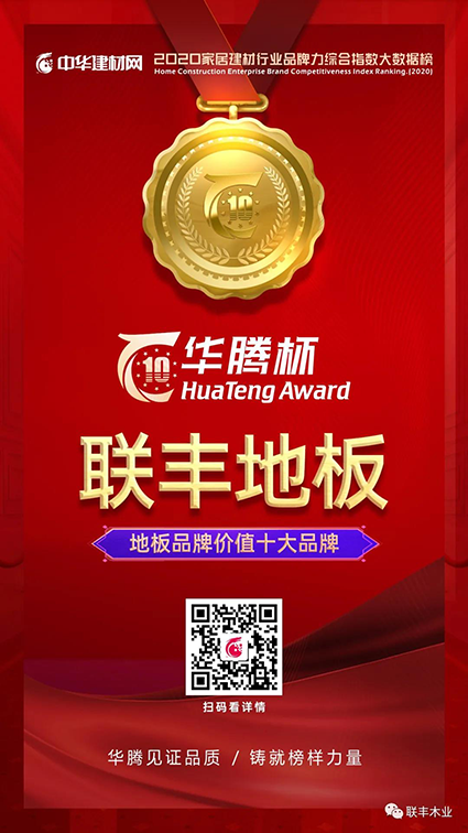 日前,備受業(yè)界矚目的由家居建材行業(yè)綜合門戶“中華建材網(wǎng)”,依托自身“大數(shù)據(jù)研究院”和“云計(jì)算系統(tǒng)”,傾力打造的“華騰杯”中國地板十佳品牌、地板十大品牌網(wǎng)絡(luò)評(píng)選活動(dòng)重磅揭曉,聯(lián)豐地板于強(qiáng)手如林中脫穎而出,連續(xù)四年榮耀加持“中國地板十佳品牌(地暖類),連續(xù)十年榮獲“中國地板品牌價(jià)值十大品牌”,不斷見證著品牌發(fā)展的生機(jī)與活力。