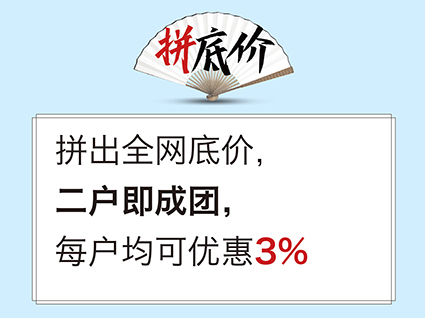 拼出全網底價,二戶即成團,每戶均可優(yōu)惠3%!五一大放價,讓利大出血!