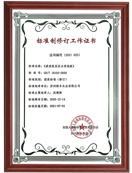 近日,GB/T 18102-2020《 浸漬紙層壓木質(zhì)地板》等 4項(xiàng)重要國(guó)家標(biāo)準(zhǔn)宣貫培訓(xùn)暨產(chǎn)業(yè)發(fā)展研討會(huì)在浙江省湖州市南潯花園名都大酒店盛大開(kāi)幕。作為GB/T 18102-2020《 浸漬紙層壓木質(zhì)地板》國(guó)家標(biāo)準(zhǔn)起草單位的蘇州聯(lián)豐木業(yè)有限公司應(yīng)邀參加了此次會(huì)議,并榮獲了此項(xiàng)標(biāo)準(zhǔn)制修訂工作證書(shū)。