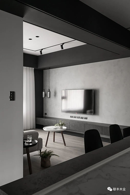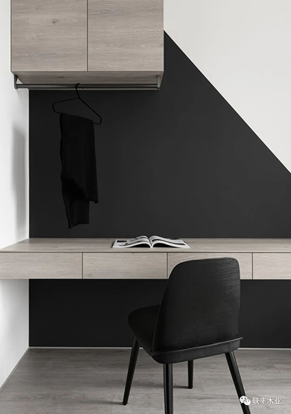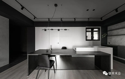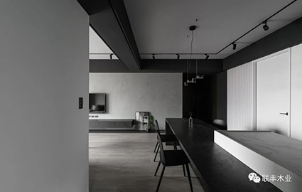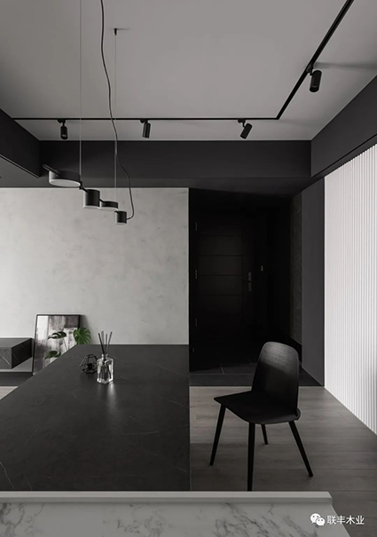 將兩者巧妙地碰撞、交融在一起,會(huì)產(chǎn)生一種微妙的化學(xué)反應(yīng),它們讓一切簡(jiǎn)單純粹、神秘優(yōu)雅都水到渠成,既保留了干凈簡(jiǎn)約的視感體驗(yàn),又能與其他色彩和材質(zhì)進(jìn)行搭配,營造出時(shí)尚輕奢的氣質(zhì)空間。