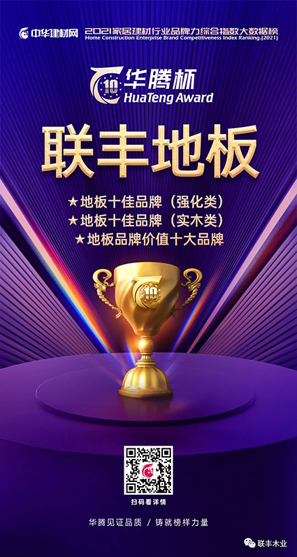 近日,由中華建材網(wǎng)發(fā)起主辦的“華騰杯”2021家居建材行業(yè)中國地板十大品牌、地板十佳品牌網(wǎng)絡(luò)評(píng)選活動(dòng)重磅揭曉,該榜單聚焦家居建材企業(yè)的品牌影響力、創(chuàng)新驅(qū)動(dòng)力和專業(yè)推廣力,以嚴(yán)謹(jǐn)?shù)膽B(tài)度、科學(xué)的體系、客觀的模型綜合考量家居建材企業(yè)品牌綜合實(shí)力,聯(lián)豐地板金榜題名,榮獲“中國地板品牌價(jià)值十大品牌”、“中國地板十佳品牌(實(shí)木類)”、“中國地板十佳品牌(強(qiáng)化類)”三項(xiàng)大獎(jiǎng),連續(xù)多年榮耀加身,見證品牌發(fā)展的歷程、升級(jí)與活力。