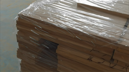 給干燥養(yǎng)生后的實木地板坯料“敷膜”,是為了隔絕坯料與外界環(huán)境的水分交換,確保坯料即拆即用。