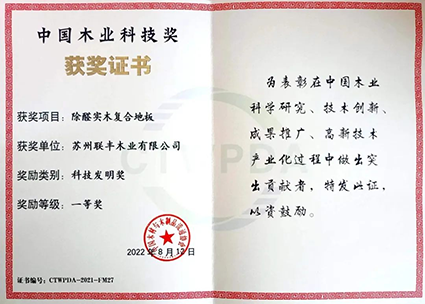 聯(lián)豐除醛實(shí)木復(fù)合地板獲“中國木業(yè)科技發(fā)明一等獎”