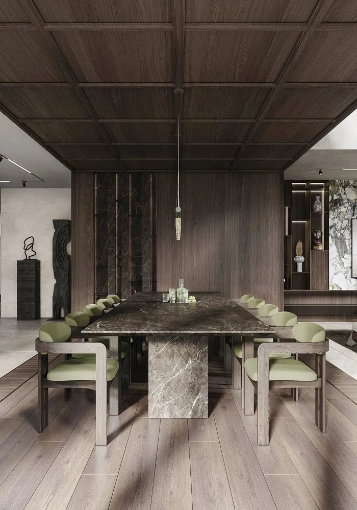 聯(lián)豐地板的灰色與留白相得益彰,寬闊的空間與形態(tài)各異的家居設(shè)計,營造視覺感官的層次品味。